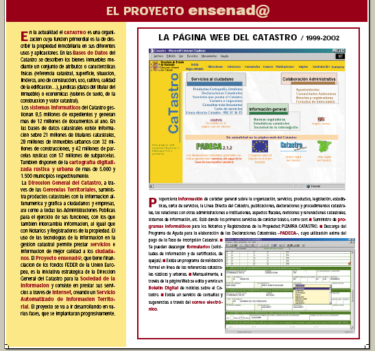 Para poder ofrecer un servicio a los distintos usuarios acorde con los nuevos canales de la información la DG del Catastro ha desarrollado el Proyecto Ensenada, este es un proyecto que se implanta en Internet en los inicios del año 2004 y en el cual los ciudadanos y las Administraciones Públicas pueden acceder a una serie de servicios y procedimientos electrónicos personalizados que les permite realizar buena parte de las gestiones ante el Catastro de una forma cómoda, rápida y segura accediendo a través de Internet a la oficina virtual del Catastro (http://www.catastro.meh.es/).
